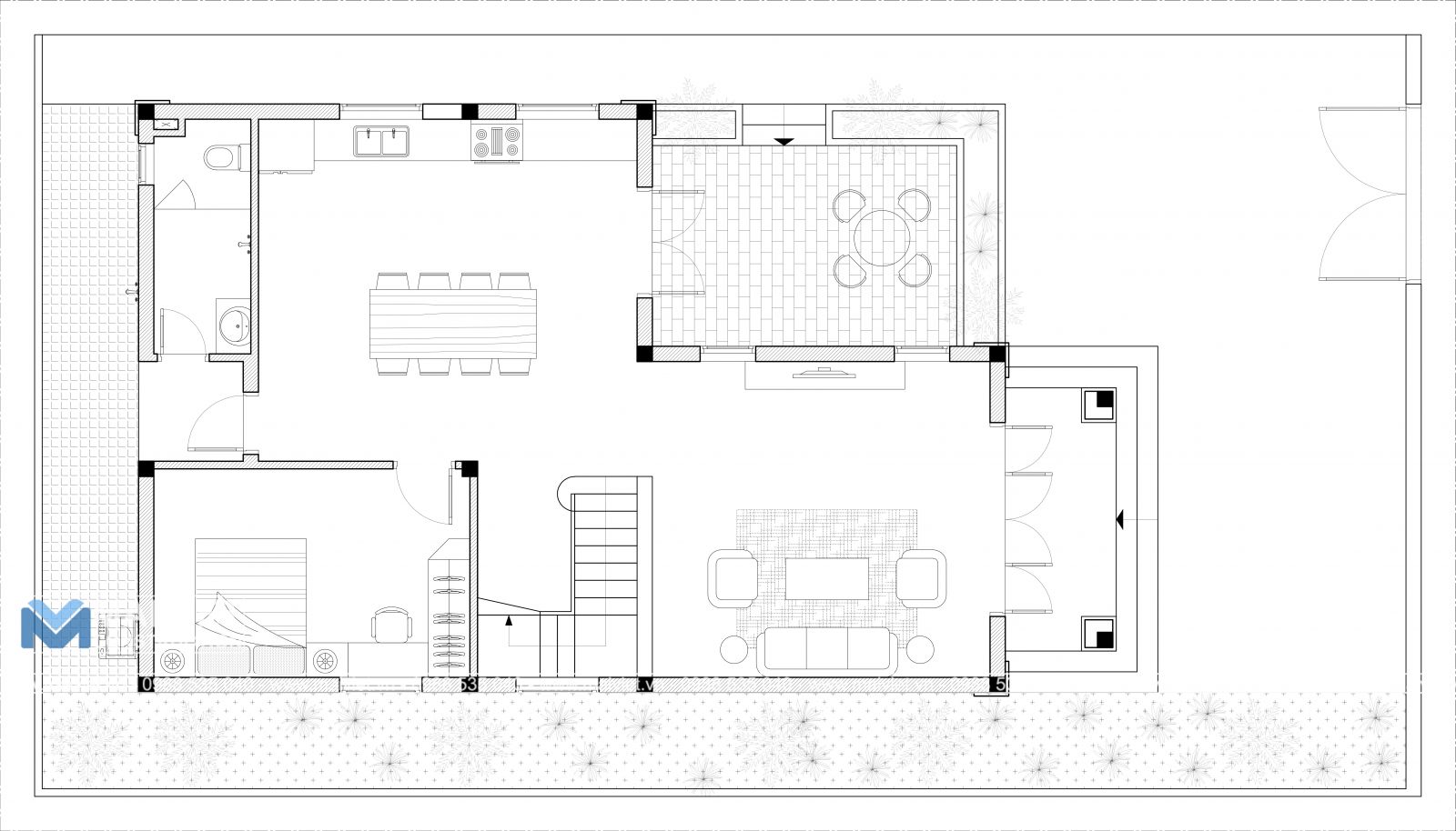 Tầng 01 được bố trí với chức năng như khu sinh hoạt chính của gia đình với phòng khách, bếp và 01 phòng ngủ dành cho Ông Bà. Đặt biệt dành 01 phần diện tích khá rộng cho phần sân ngoài trời, có mái che đảm bảo tránh mưa nắng.