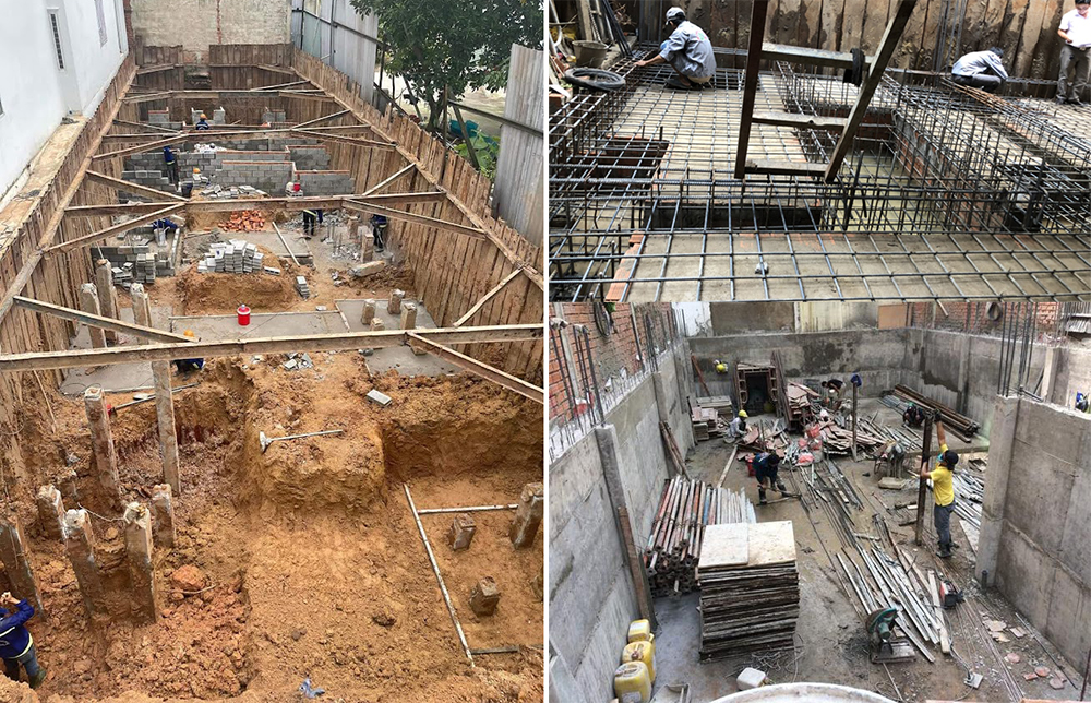 - Công trình thi công móng bè, phần móng tính 70% diện tích tầng trệt.