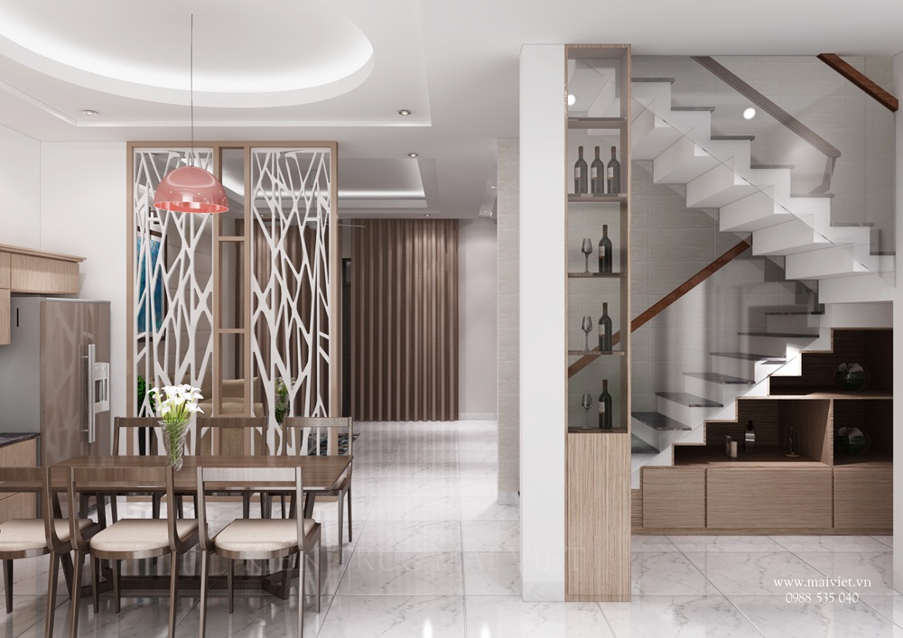 Phong cách hiện đại với những chất liệu công nghiệp như kính, bê tông hay các sản phẩm nội thất gỗ mang sắc màu của tối giản.