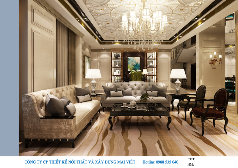 Phòng khách sang trọng với tông ghi xám chủ đạo.