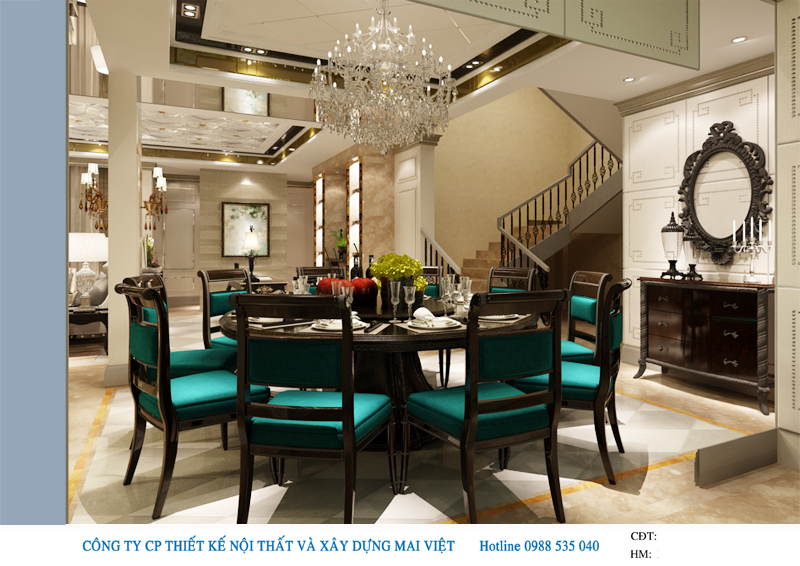 Bếp-ăn liền kề phòng khách và sử dụng đồ gỗ nội thất chủ đạo.