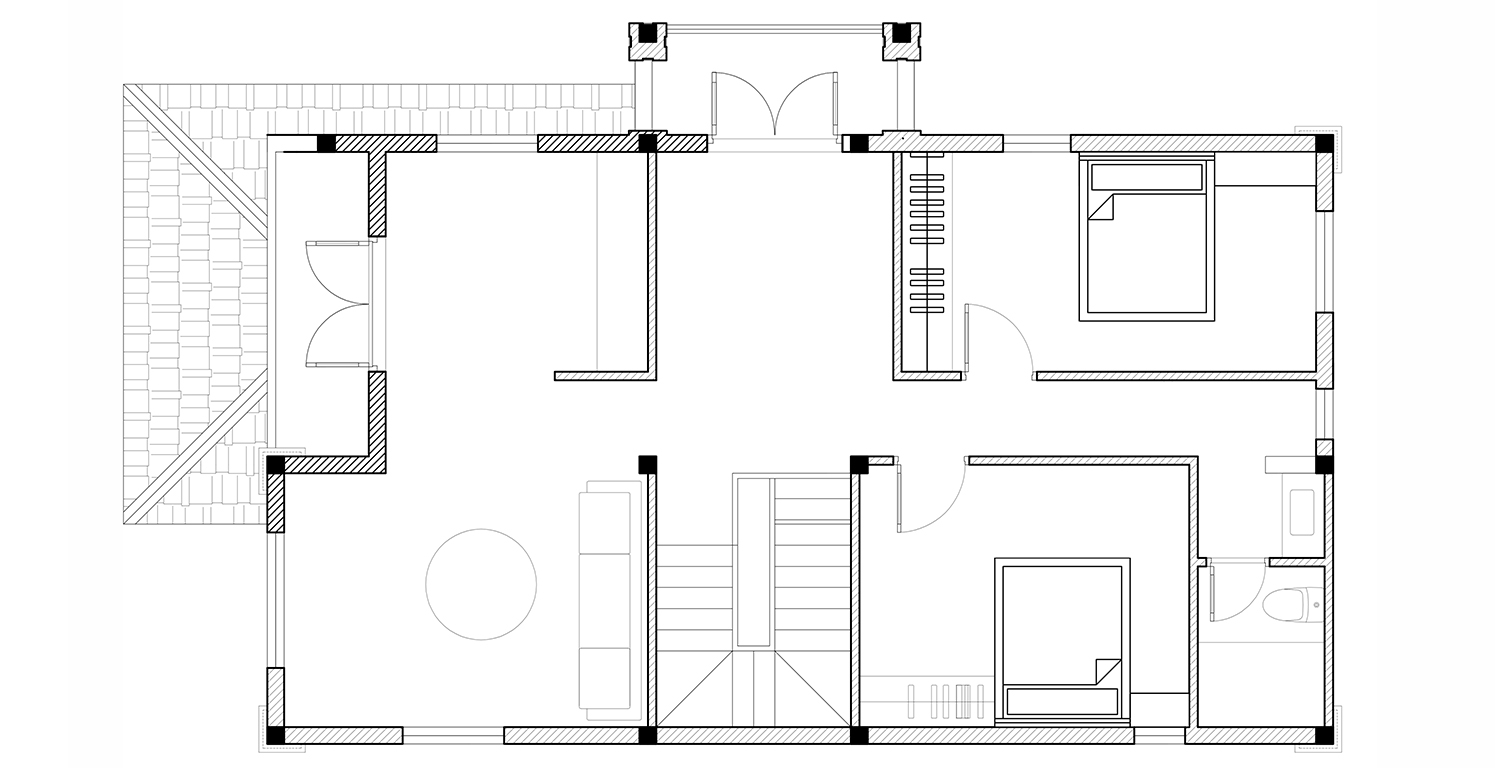 Ngôi nhà gồm 2 tầng với tổng cộng 4 phòng ngủ, được bố trí hợp lý để đảm bảo sự riêng tư nhưng vẫn kết nối hài hòa giữa các thành viên trong gia đình.