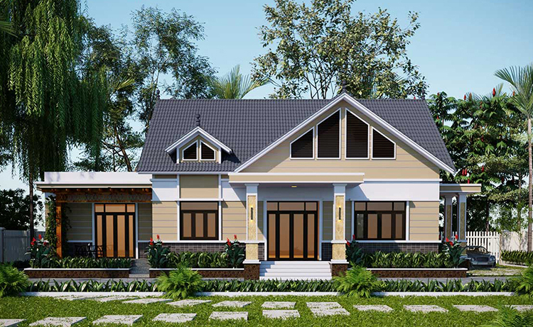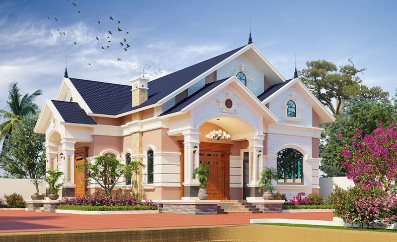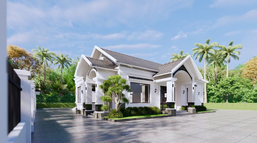 Biệt thự một tầng thiết kế kiểu Thái phổ biến ở các vùng quê Việt Nam. Một tầng thấp sẽ hạn chế rất nhiều không gian trong biệt thự. Tuy nhiên, nó phù hợp với các gia đình có ít thành viên cần một không gian đủ tiện nghi.