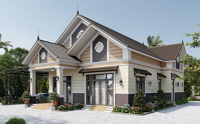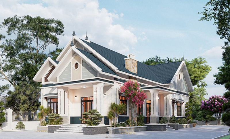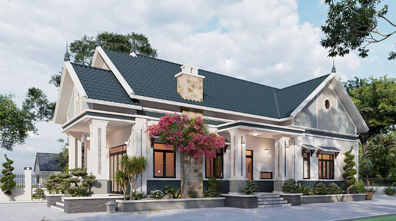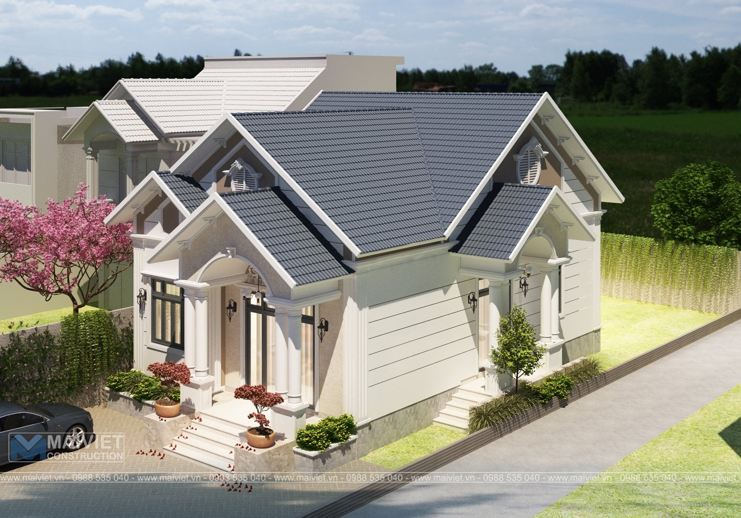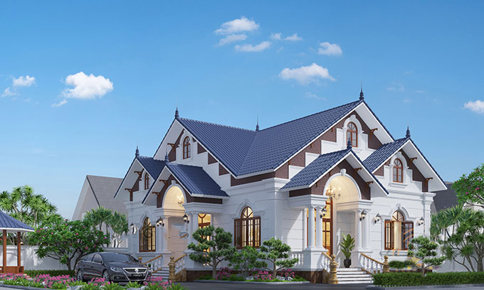 Biệt thự mái thái 1 tầng là một loại nhà ở thấp có kiểu Thái và sân vườn. Một độ dốc nhất định được tạo ra bởi kiểu thái xếp lớp tôn lên nét đẹp vững chãi, chắc chắn của căn biệt thự. Tổng thể thiết kế phô bày sự bề thế, khỏe khoắn của nó và cân xứng với không gian vườn.