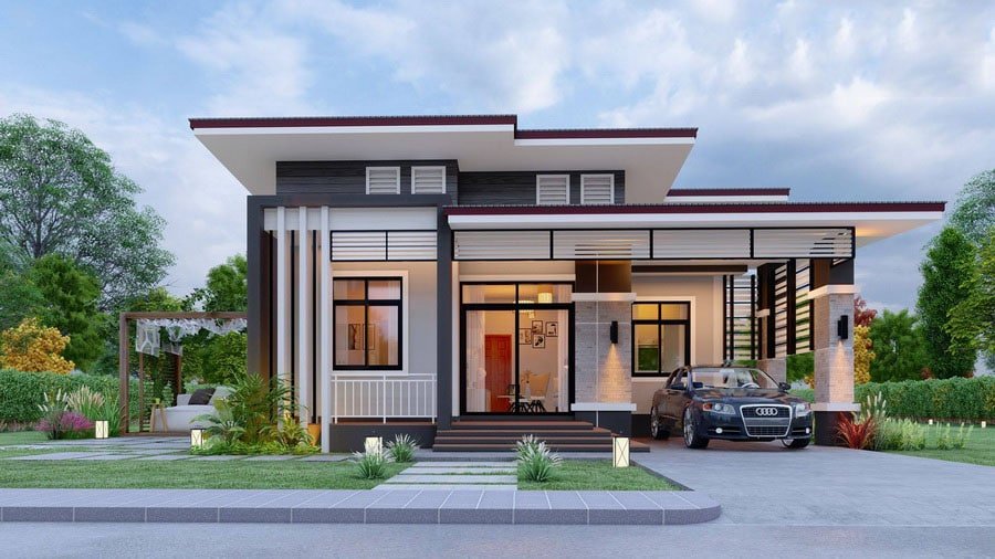 Mẫu nhà một tầng là mẫu nhà khá phù hợp với khu vực ngoại thành với khuôn viên đất rộng.