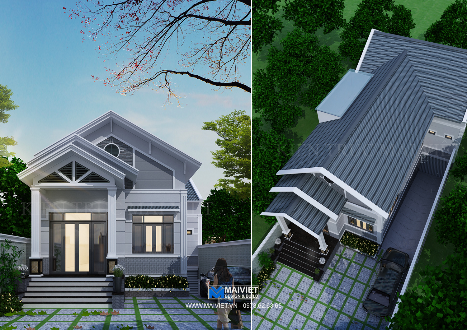 Hình ảnh thiết kế kiến trúc biệt thự 1 tầng 10x20