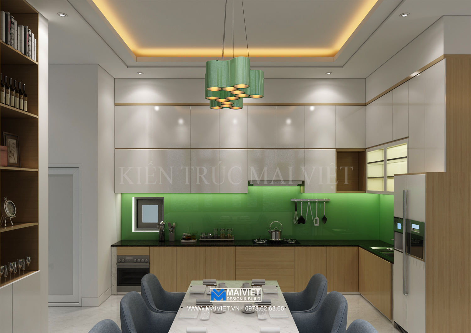- Mẫu biệt thự hiện đại được xây dựng trên khuôn viên đất rộng 10m và chiều sâu 40m. Công trình tọa lạc trên vị trí đất triền dốc về phía sau nên phần sau nhà được tận dụng làm hầm xe, phòng Karaoke và các phòng chức năng khác như nhà kho...Tầng 1 được bố trí phòng khách phía chính diện cặp bên cạnh là phòng thờ, tạo không gian ấm cúng và riêng tư. 3 phòng ngủ được đưa về phía sau và không gien bếp, phòng ăn là khu vục trung tâm của gia đình.