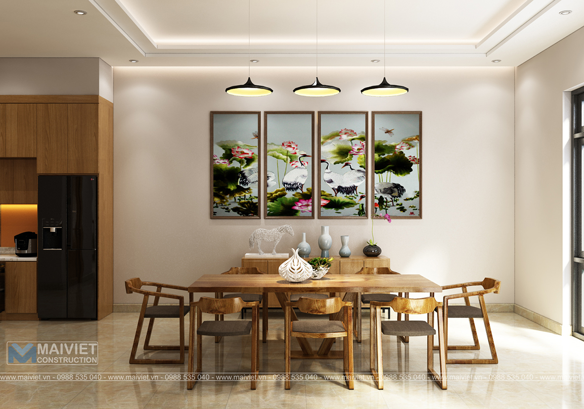 Không gian phòng ăn của biệt thự được lấy ánh sáng tự nhiên làm chủ đạo .