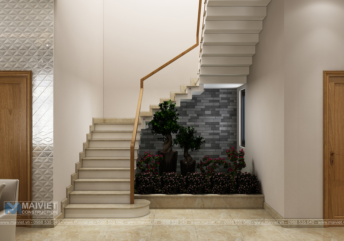 Ngay cả cầu thang của biệt thự cũng mang chất xanh vào nhà .