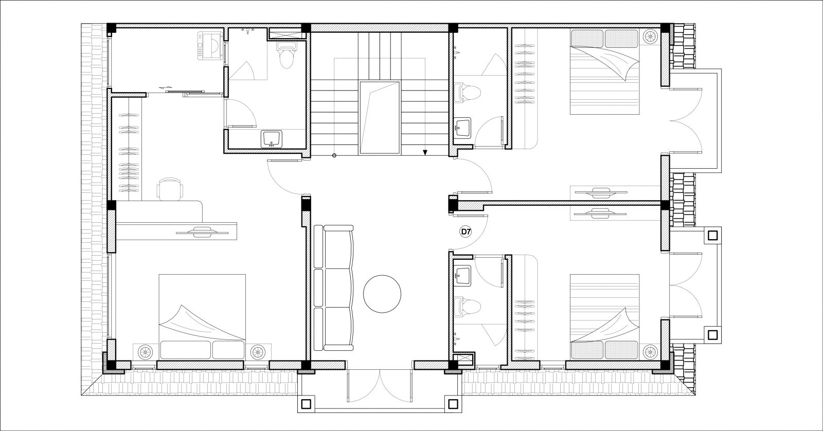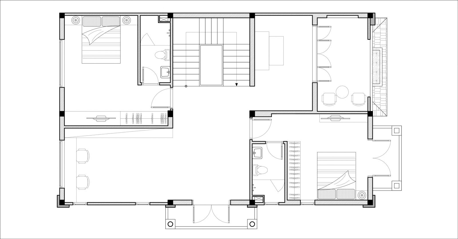 Tầng 02 được bố trí với công năng 03 phòng ngủ và 1 khu sinh hoạt chung vừa đủ đề ngồi đọc sách thư giản...Phòng ngủ Msater được bố trí đầy đủ công năng và chiếm gần 1/2 diện tích tầng 02.