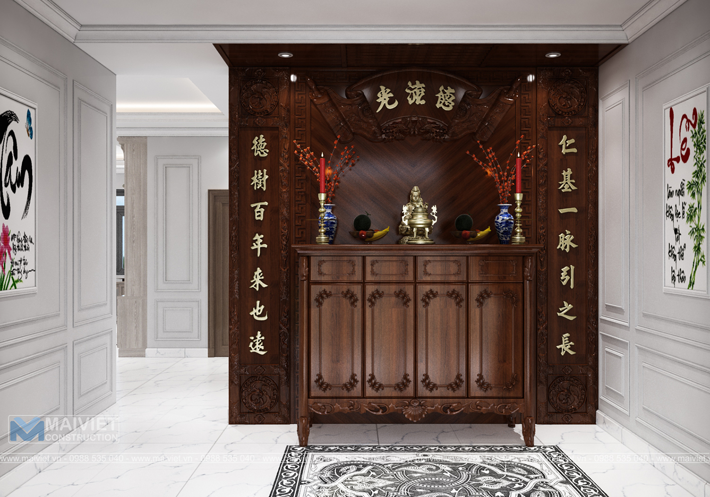 Phối cảnh thiết kế nội thất phòng thờ ( Hình thiết kế 3D)
