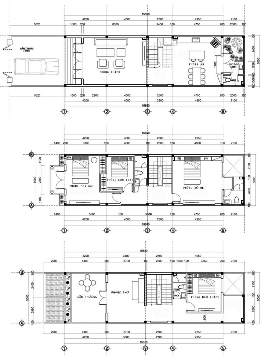 Hình ảnh thiết kế nhà phố 3 tầng 5x20 mái Thái