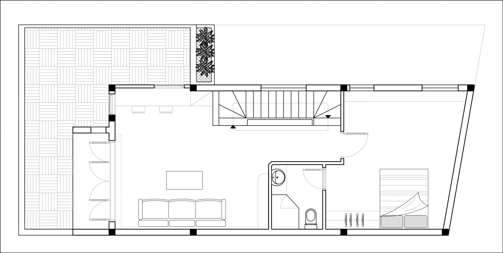 - Tầng 02 được bố trí 01 phòng ngủ với 01 phòng khách lớn phía trước mặt tiền