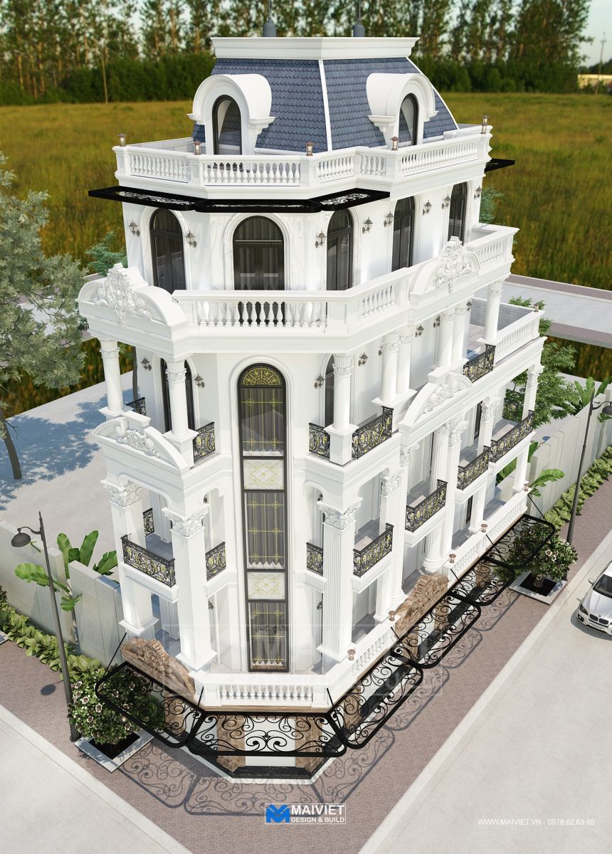Công trinh được thiết kế theo lối kiến trúc tân cổ điển, tầng 01 dành cho mục đích kinh doanh, các tầng trên dành cho sử dụng sinh hoạt gia đình
