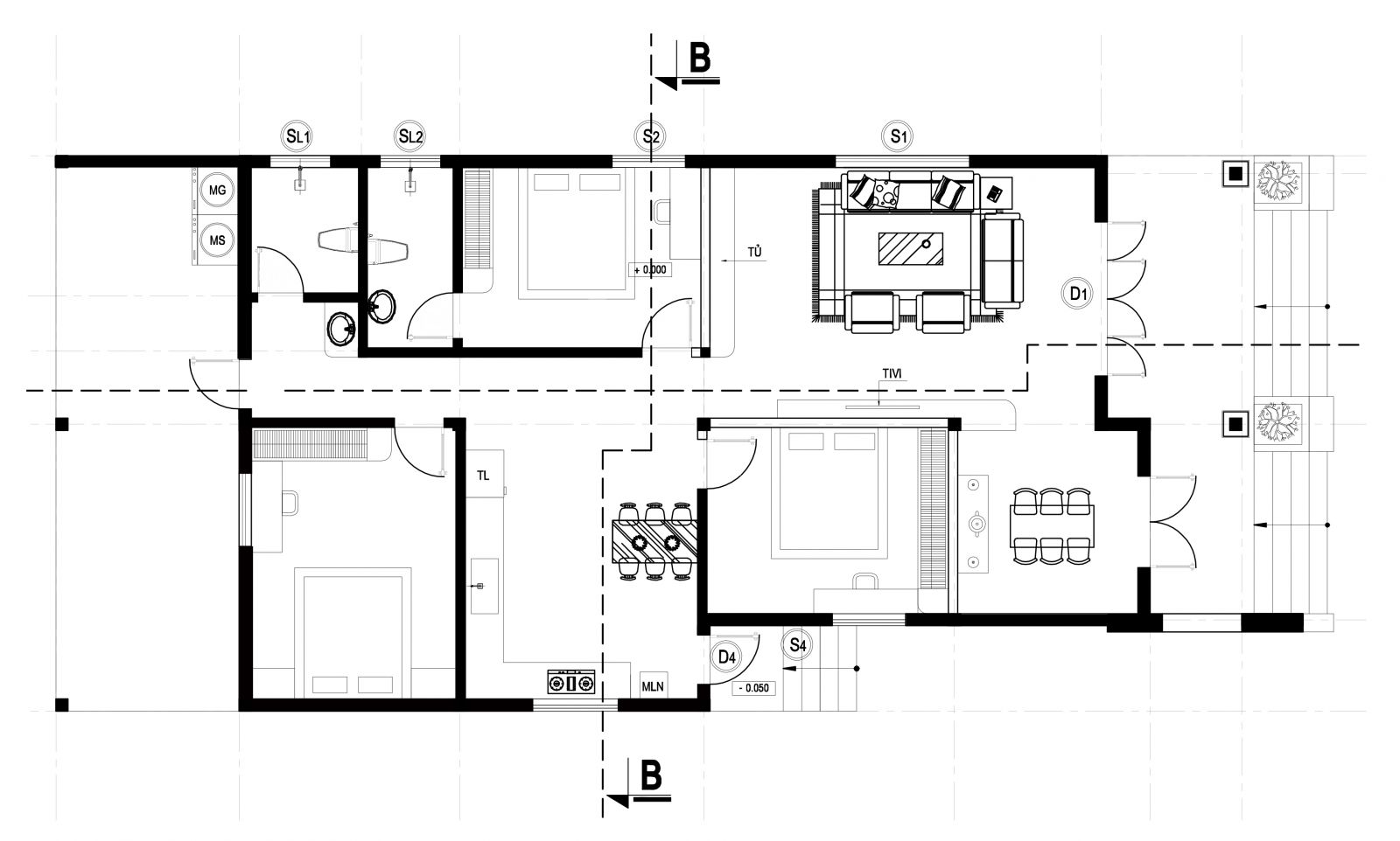 - Phòng bếp + ăn: 22m², bố trí tách biệt với phòng khách, có cửa sổ và cửa hông mở ra sân sau để tạo lối đi riêng.