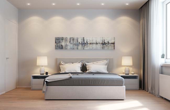 Phong cách đơn giản kết hợp với màu sơn sáng giúp cho bạn cảm thấy thoải mái khi ngủ .