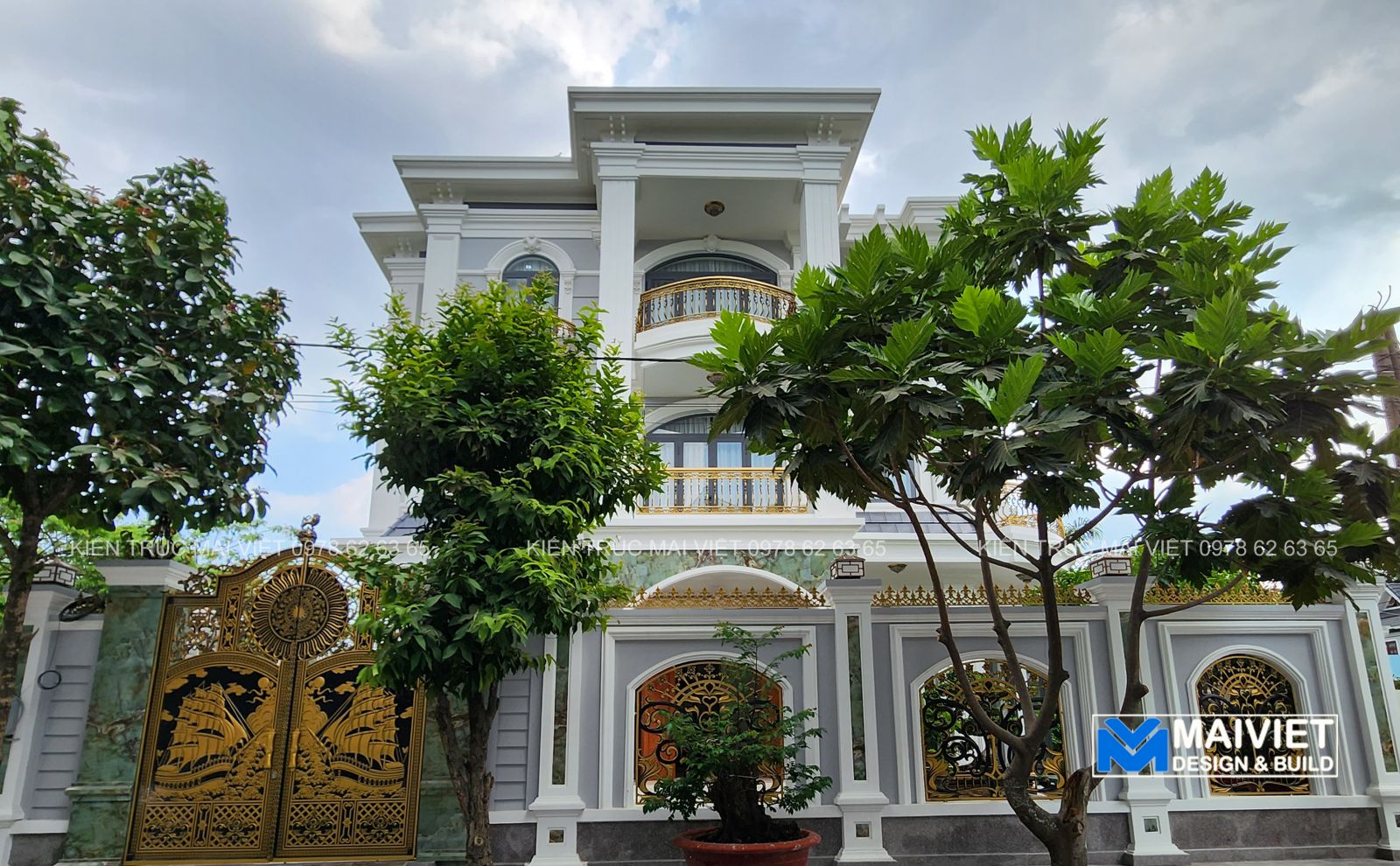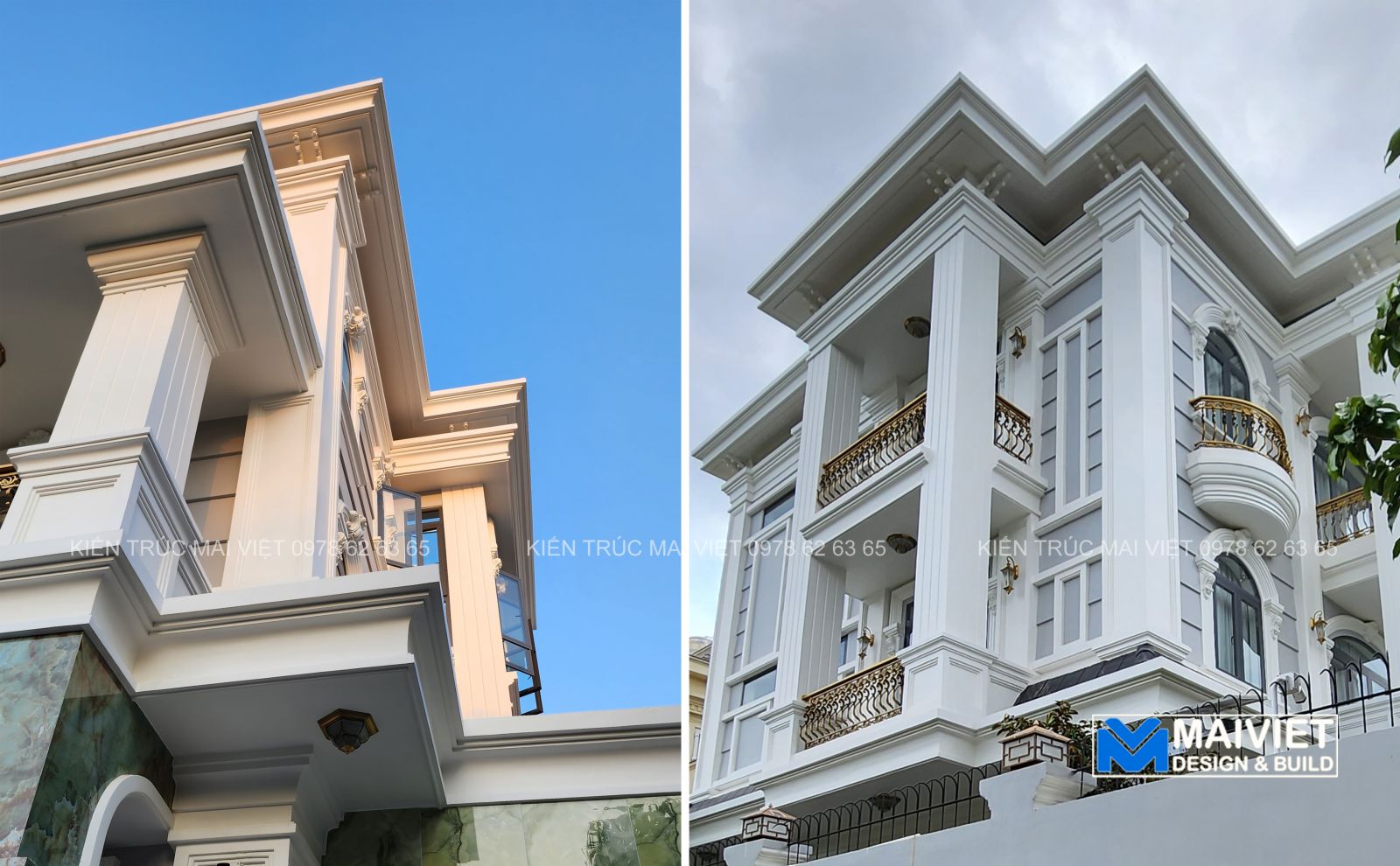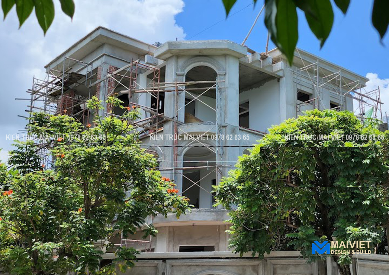 - KIẾN TRÚC MAI VIỆT thiết kế và thi công biệt thự bán cổ điển hai mặt tiền, công trình có tổng thời gian thi công 10 tháng.