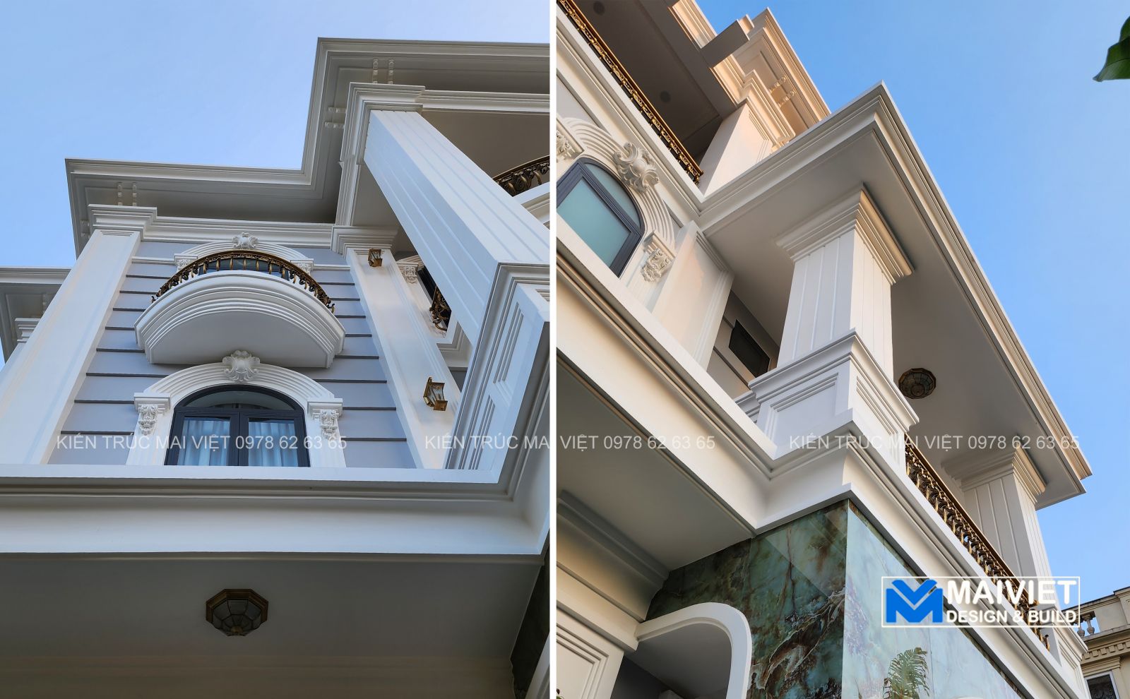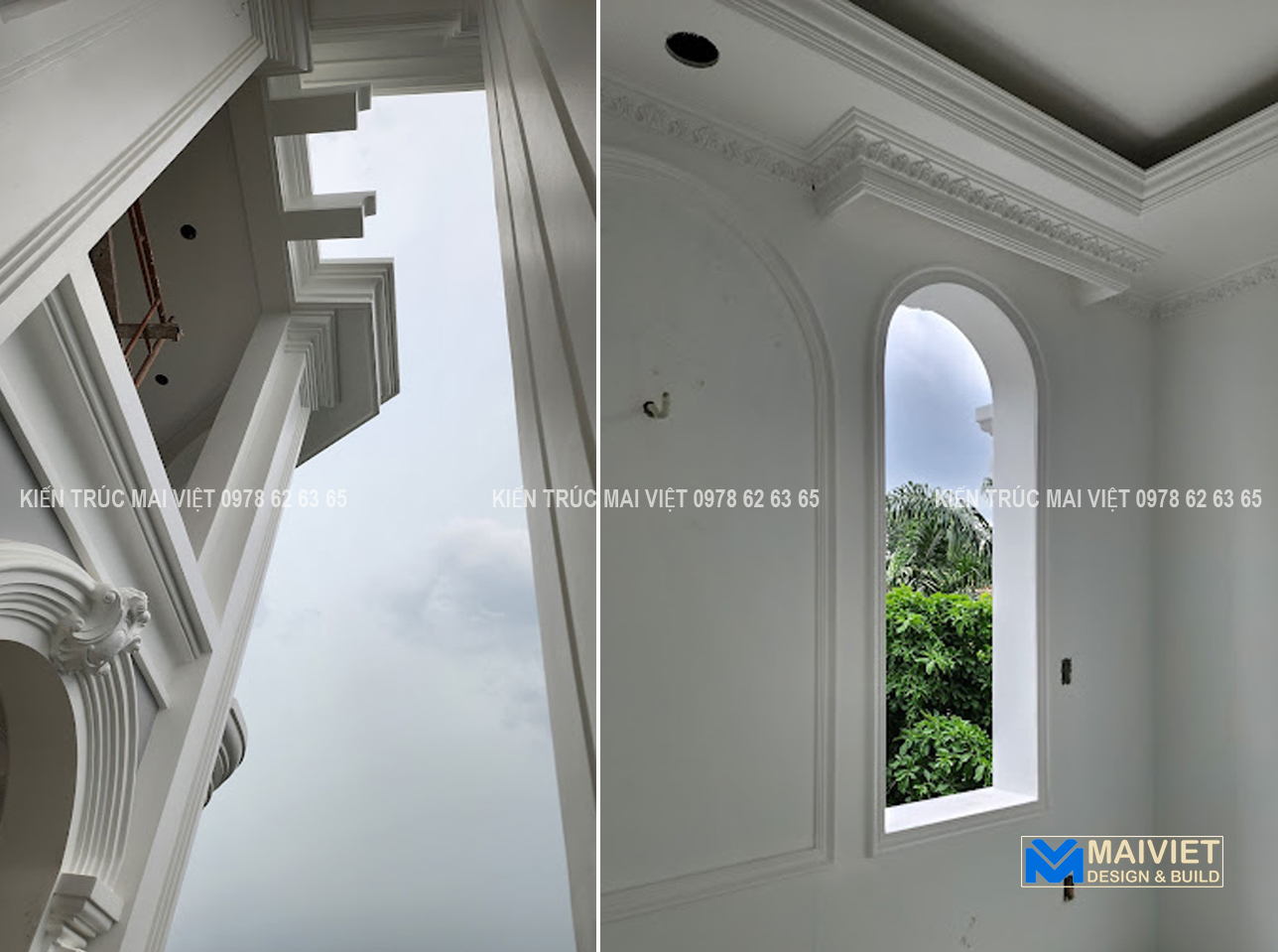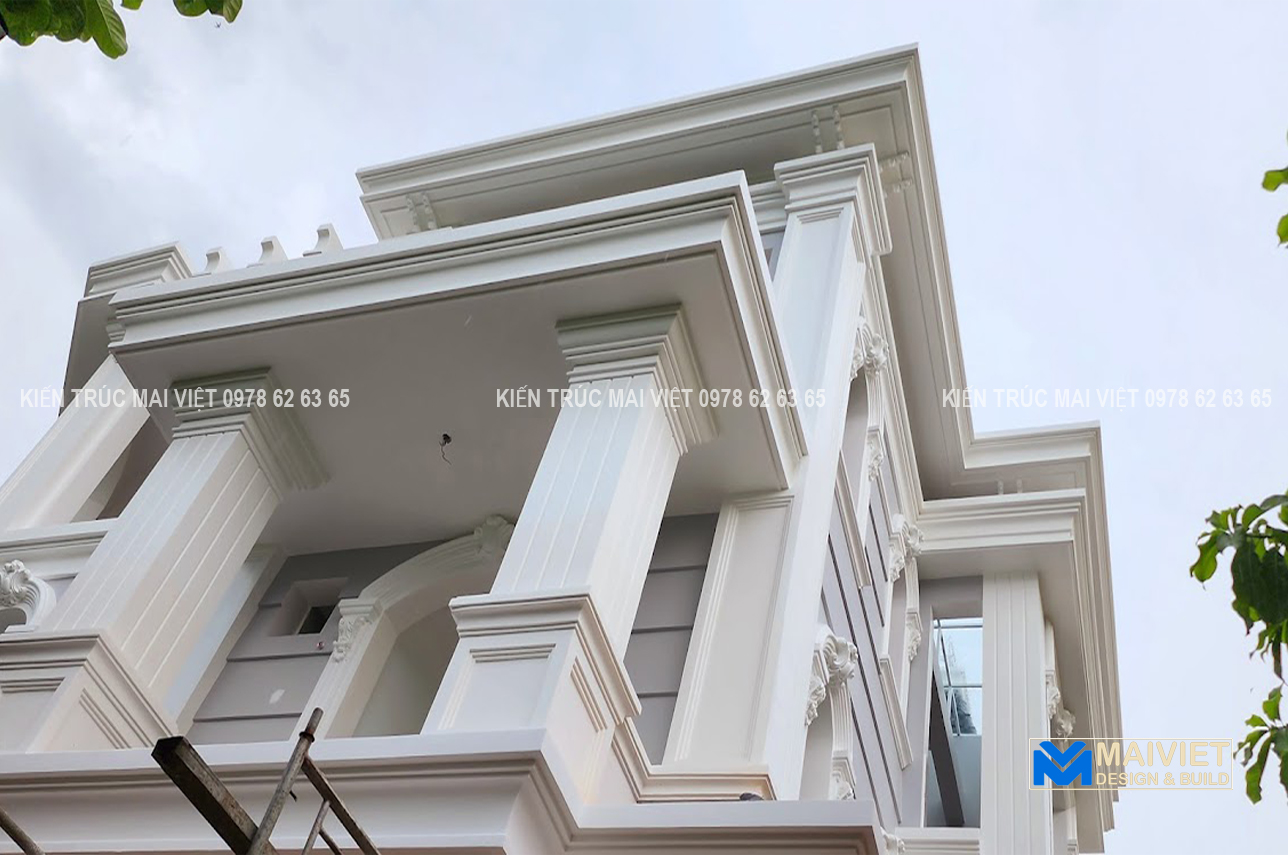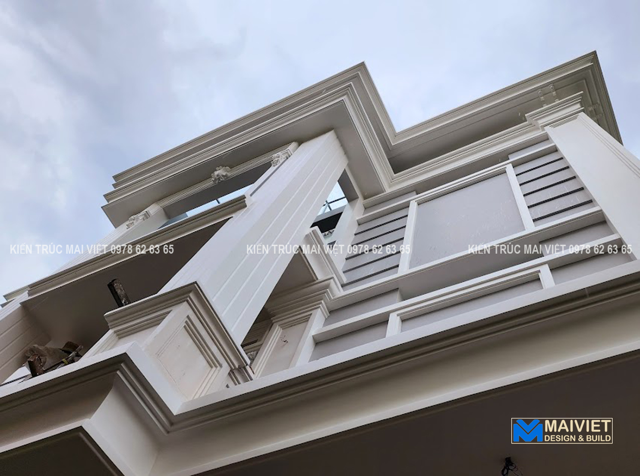 - KIẾN TRÚC MAI VIỆT thiết kế và thi công biệt thự bán cổ điển hai mặt tiền, công trình có tổng thời gian thi công 10 tháng.
