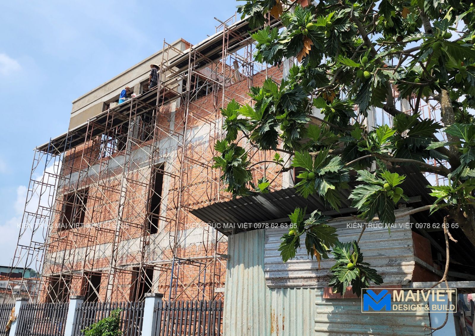 - KIẾN TRÚC MAI VIỆT thiết kế và thi công biệt thự hiện đại hai mặt tiền với quy mô 1 tầng trệt và 02 tầng lầu, công trình có tổng thời gian thi công 08 tháng.