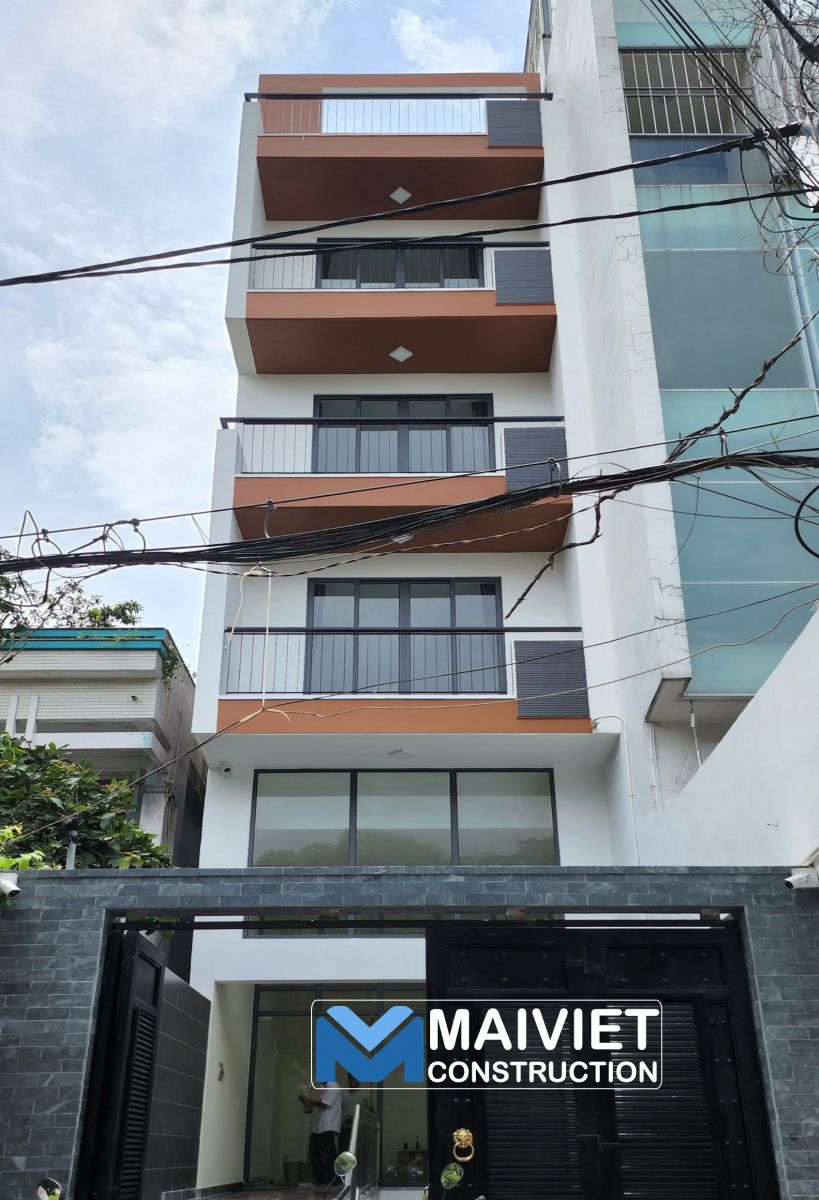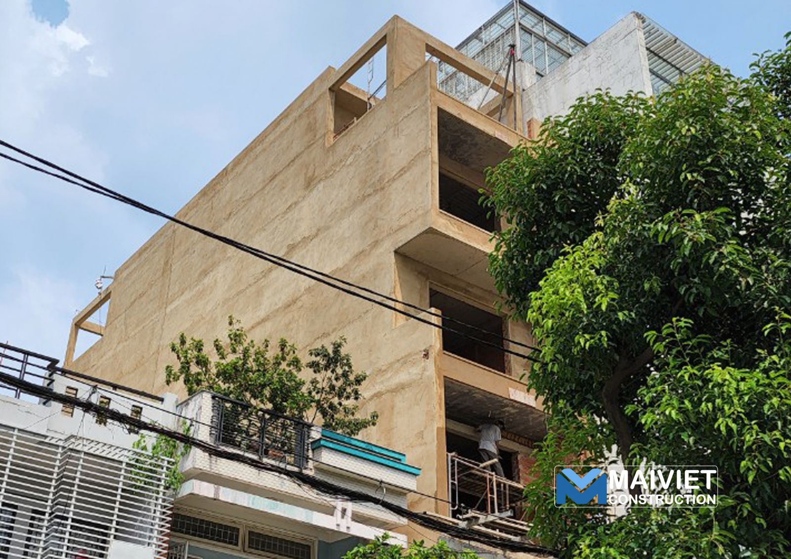 - KIẾN TRÚC MAI VIỆT thiết kế và thi công phần thô nhà phố mặt tiền 4m, công trình có quy mô 01 tầng hầm và 06 tầng nổi.