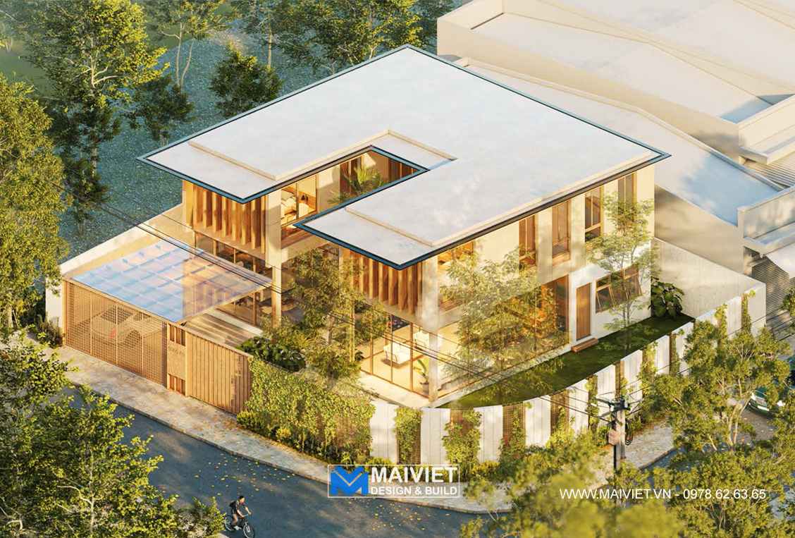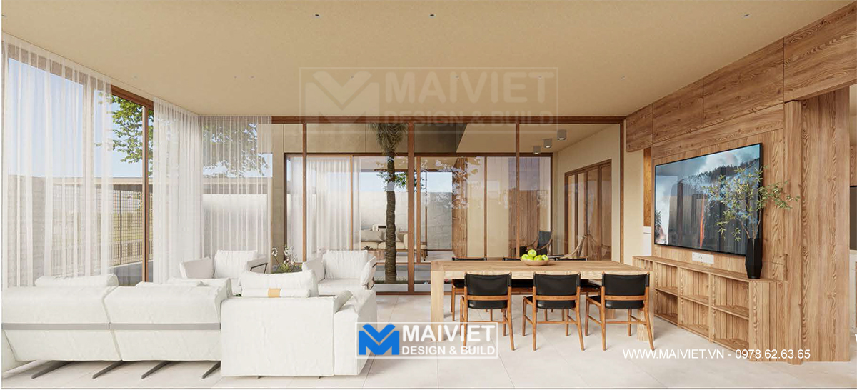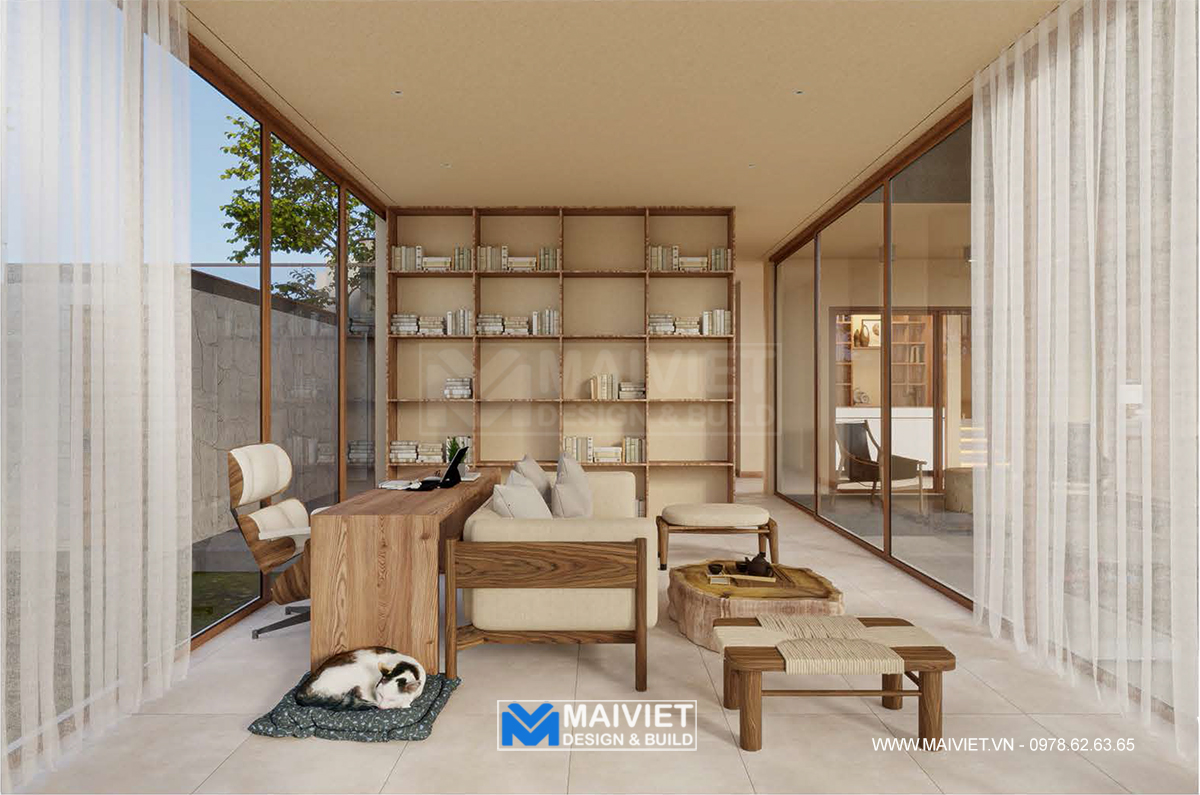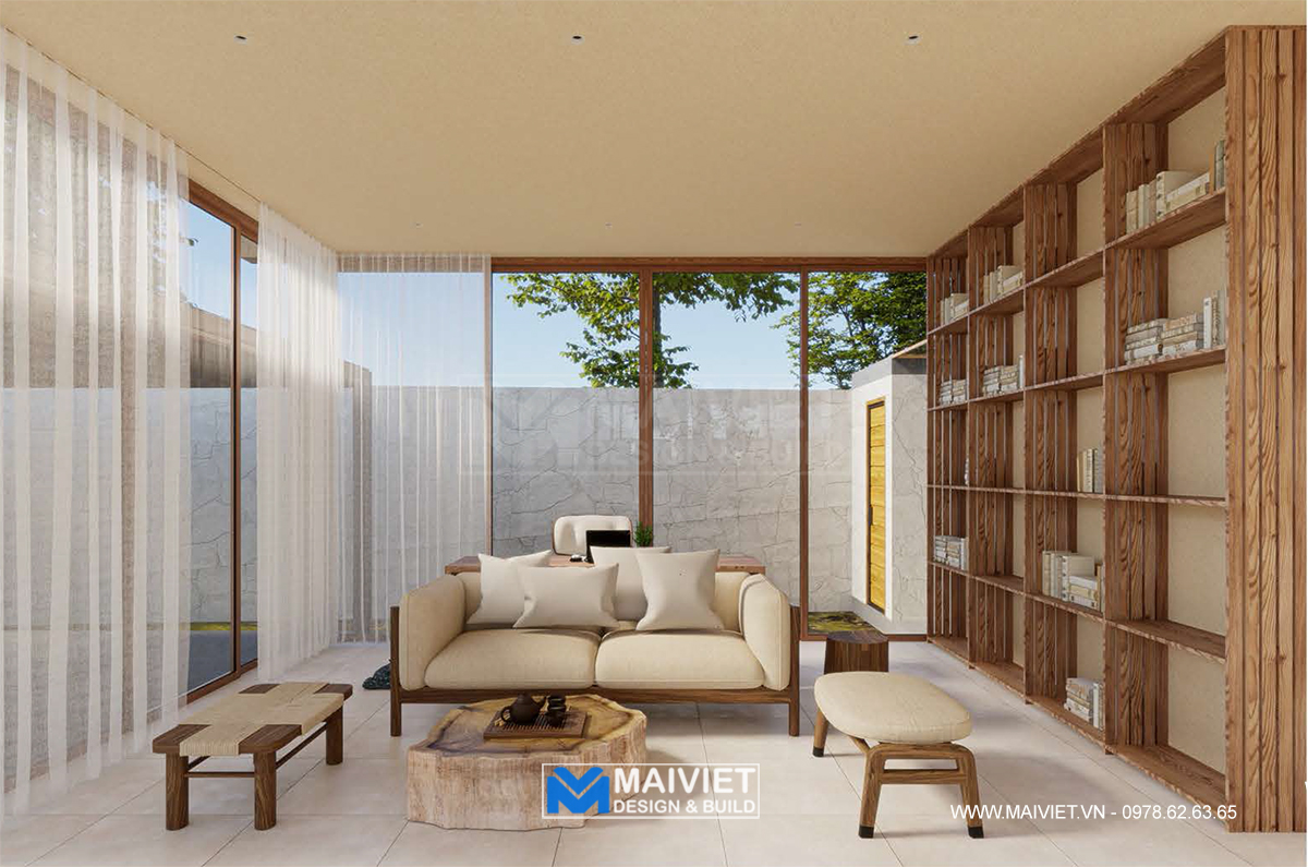 - Cốt lõi thẩm mỹ của công trình này nằm ở triết lý thiết kế "hướng nội" và tôn vinh thiên nhiên. Thay vì phô diễn những hình khối đặc, nặng nề ra bên ngoài, kiến trúc sư đã khéo léo tạo ra một "ốc đảo" bình yên, nơi mọi không gian đều được kết nối và mở ra với ánh sáng, cây xanh và mặt nước.