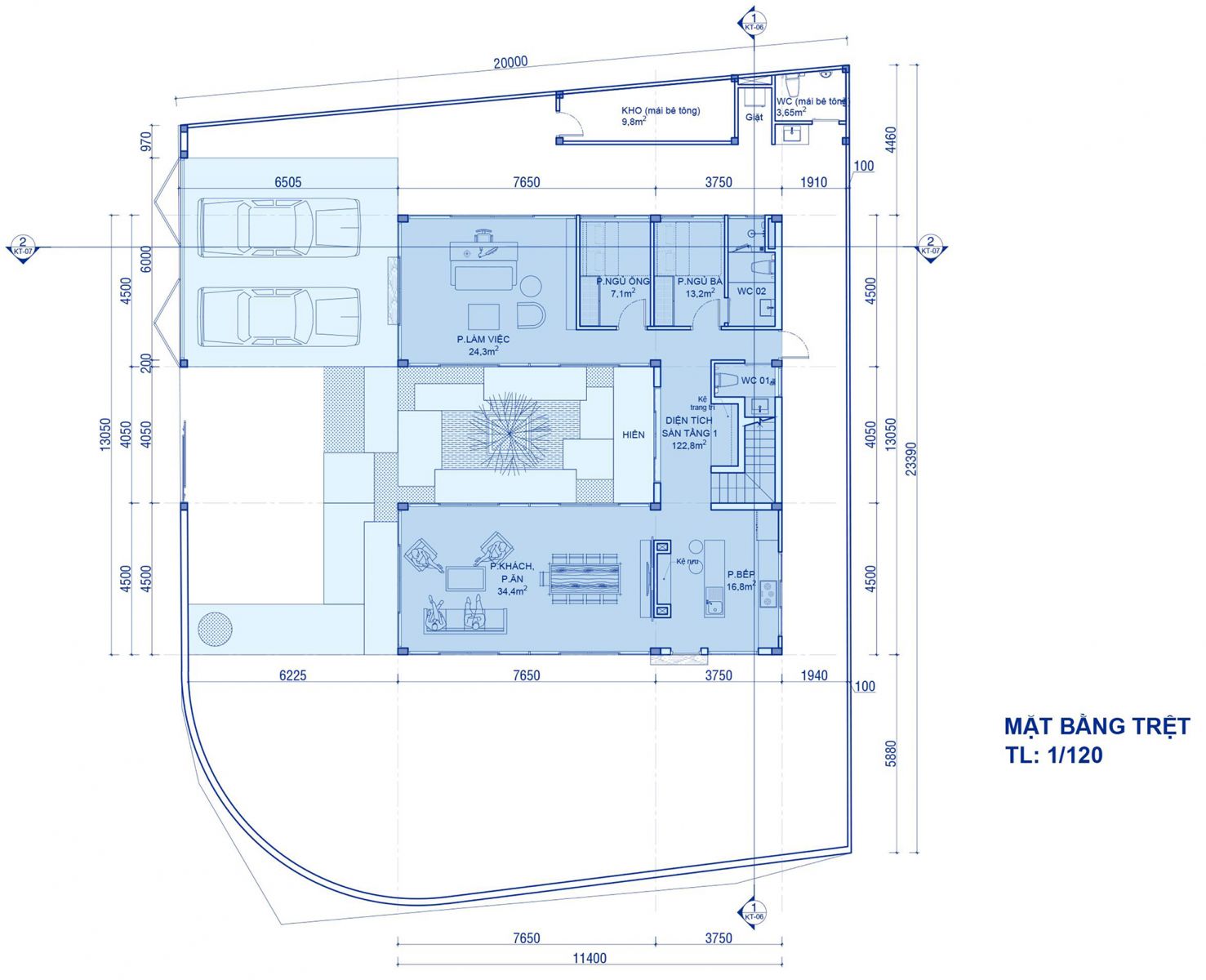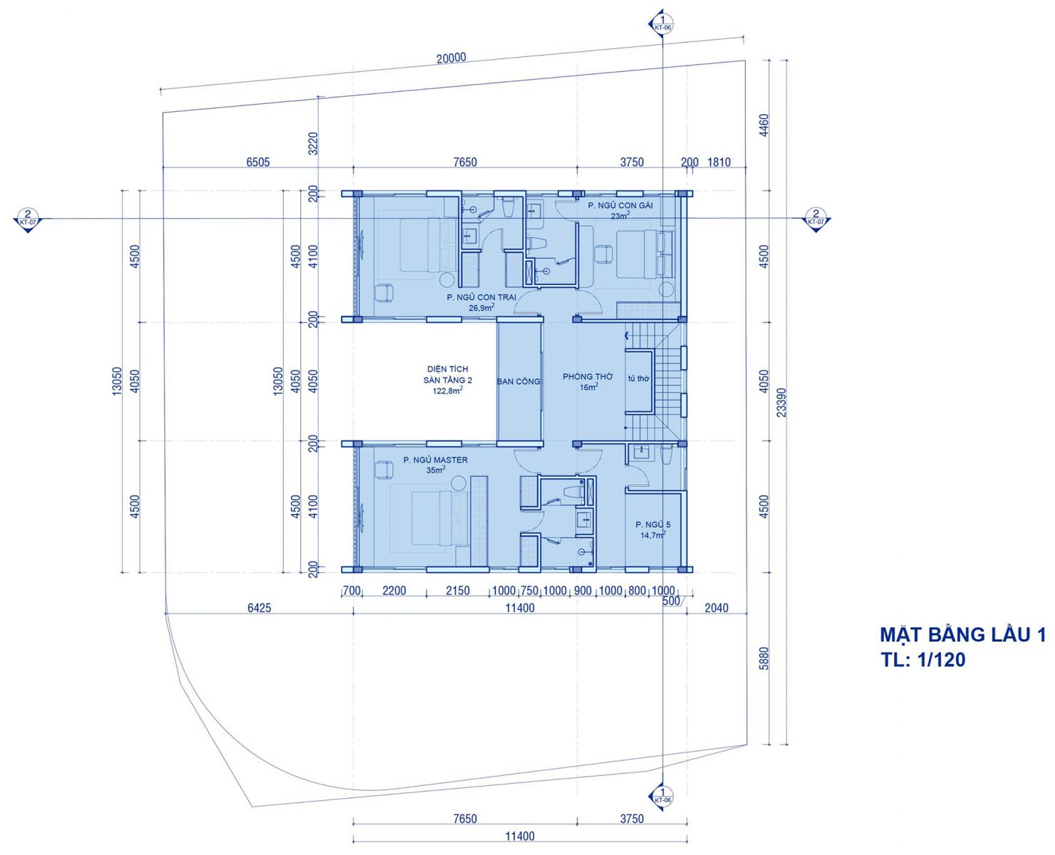 Sảnh thang lên lầu 01- Mặt bằng bố trí tầng 02