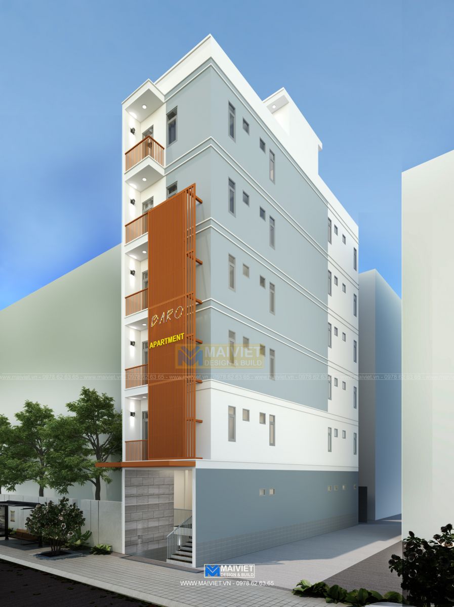 - Công trình căn hộ dịch vụ được thiết kế với quy mô 1 hầm, 1 trệt và 5 lầu và tum thang và sân thượng.
