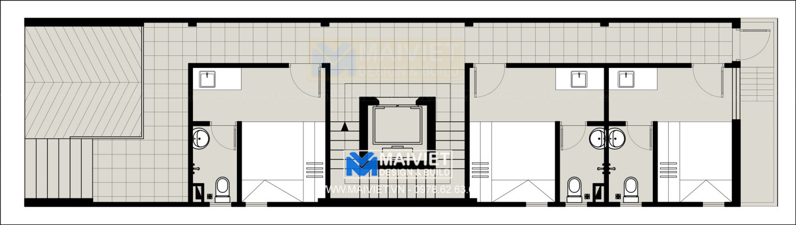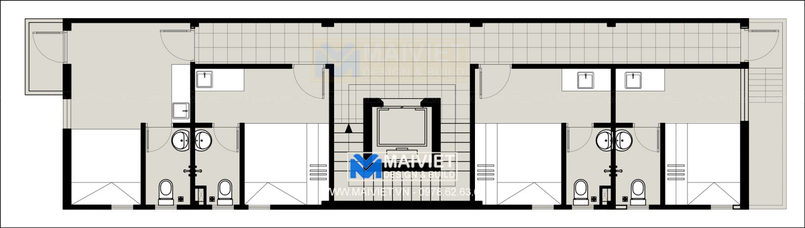 - Lầu 1 - 2 -3 -4 -5 cùng chung 1 hệ thiết kế, các tầng lầu đều được chia thành 04 phòng cho thuê