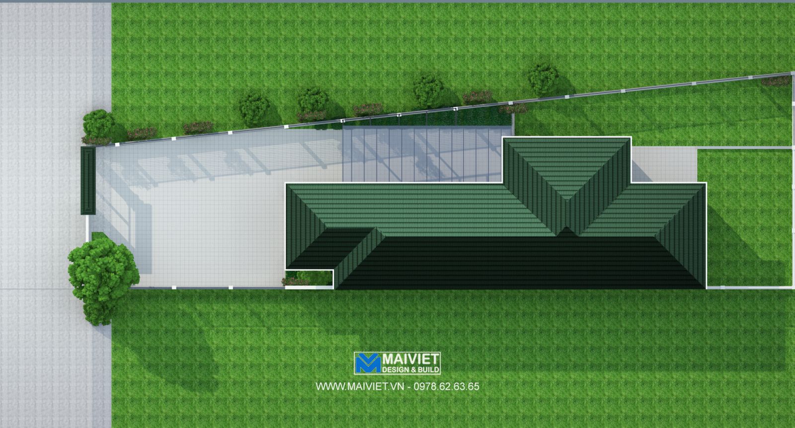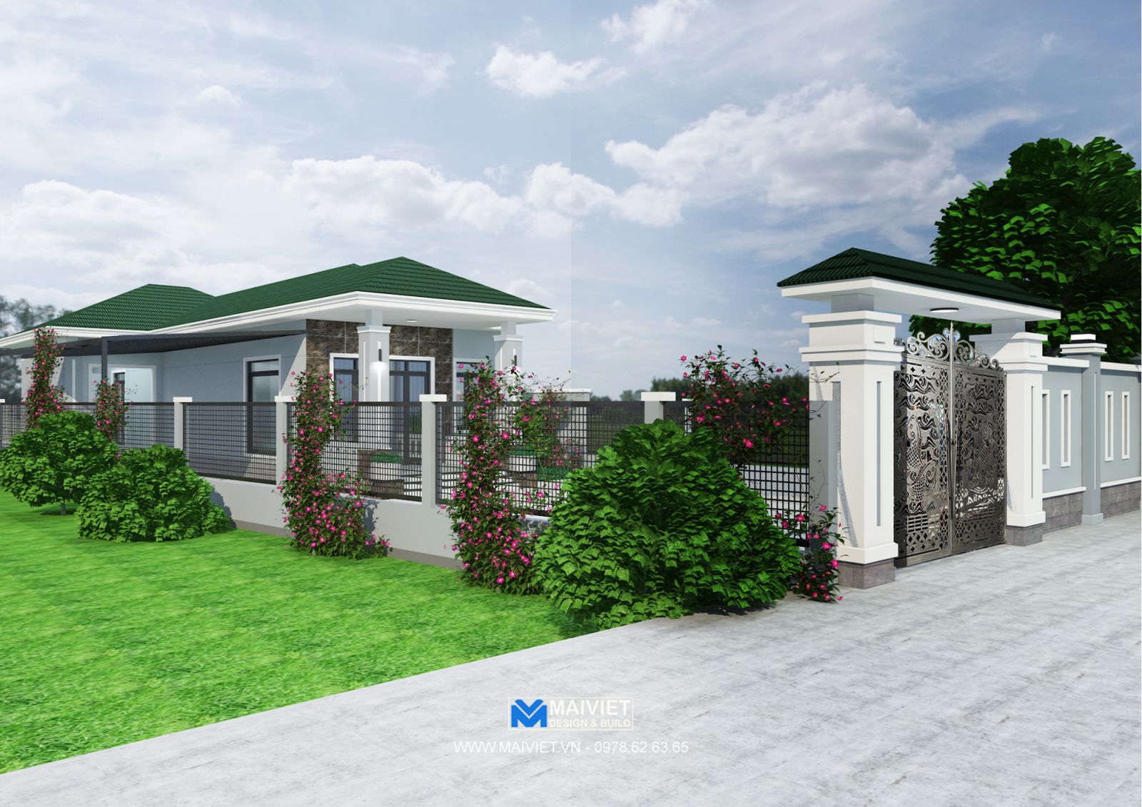 - Nhà vườn một tầng mái Nhật hiện đại do KIẾN TRÚC MAI VIỆT thiết kế và thi công xây dựng tọa lạc tại Tiền Giang