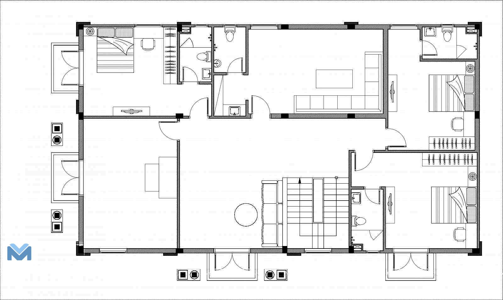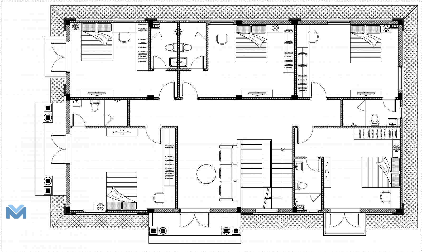 Tầng 02 được bố trí 05 phòng ngủ với 05 wc nội khu và 01 khu vực sinh hoạt chung