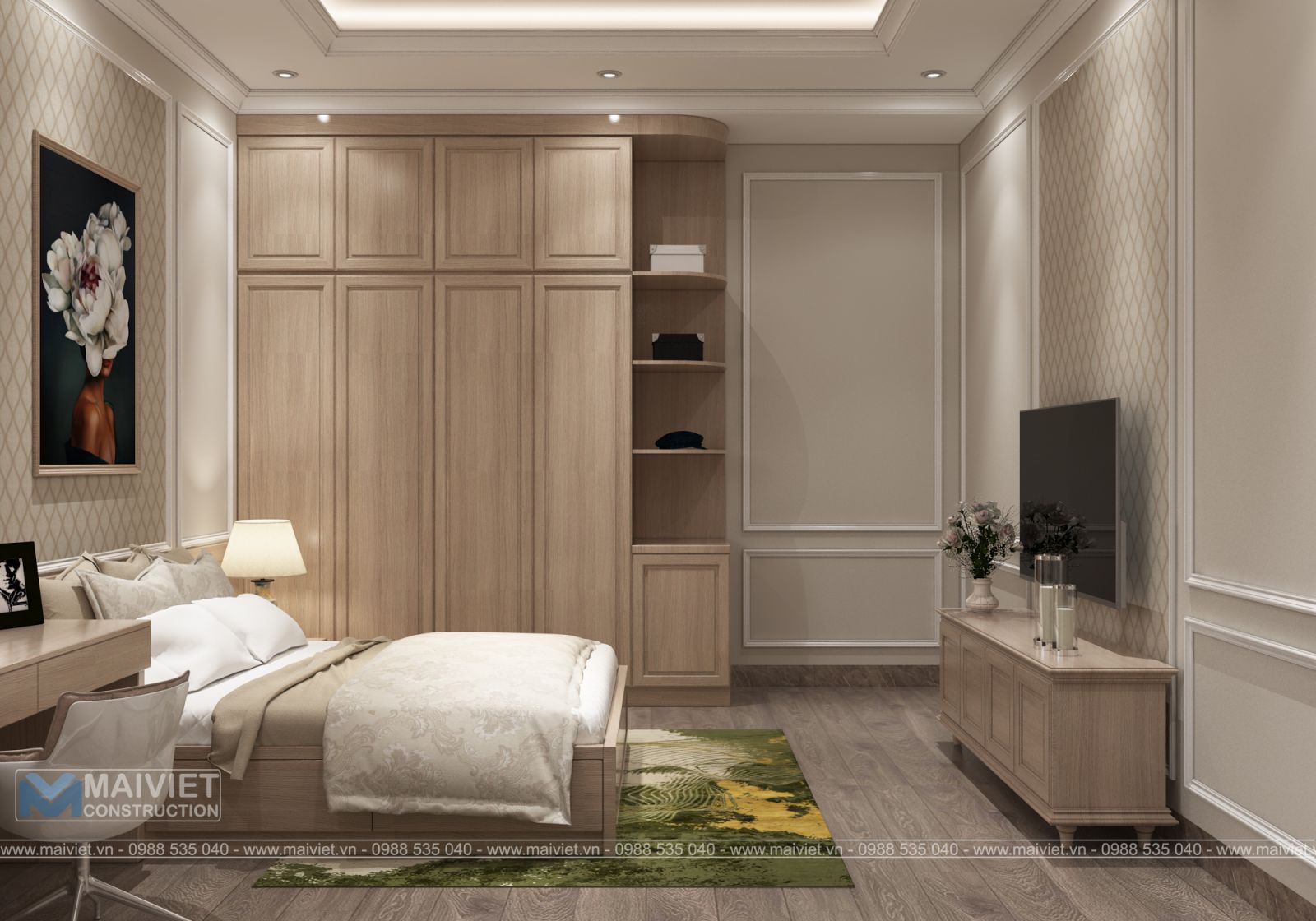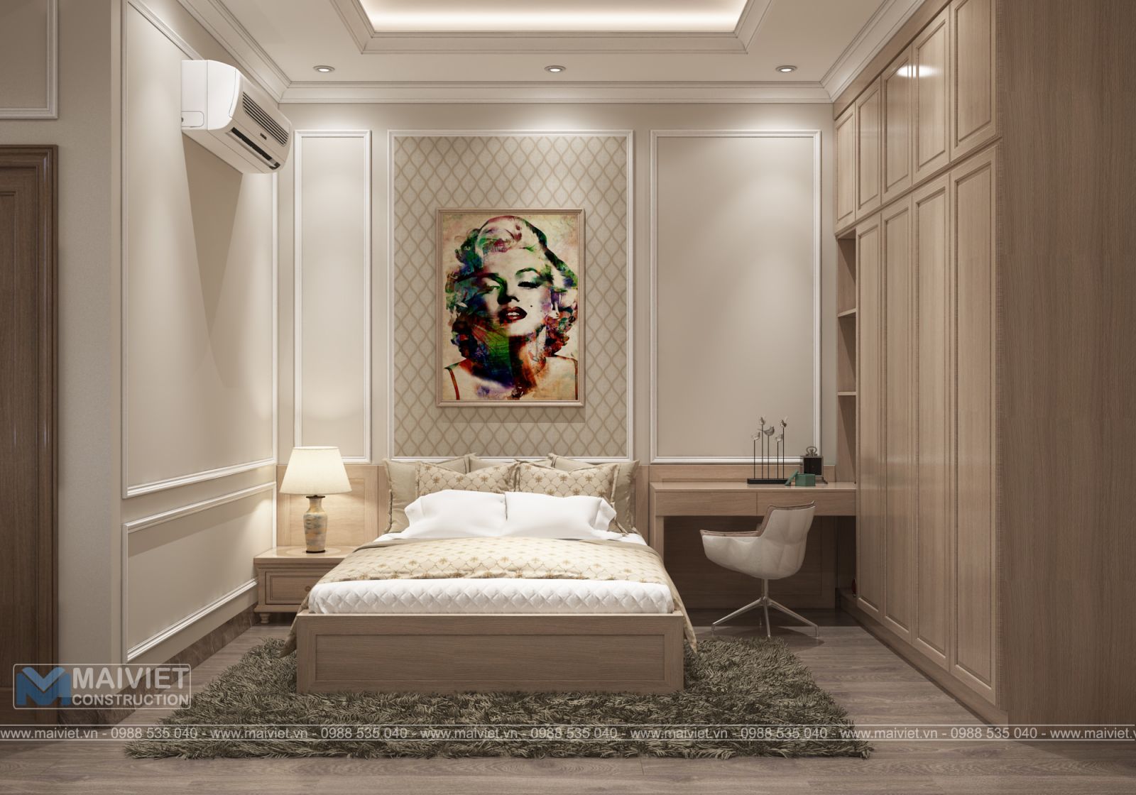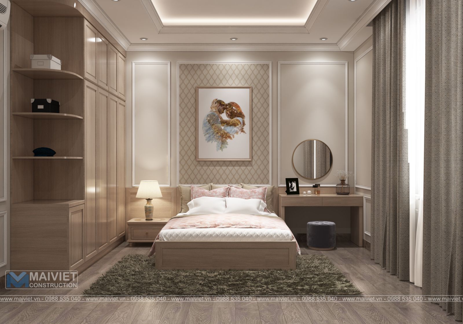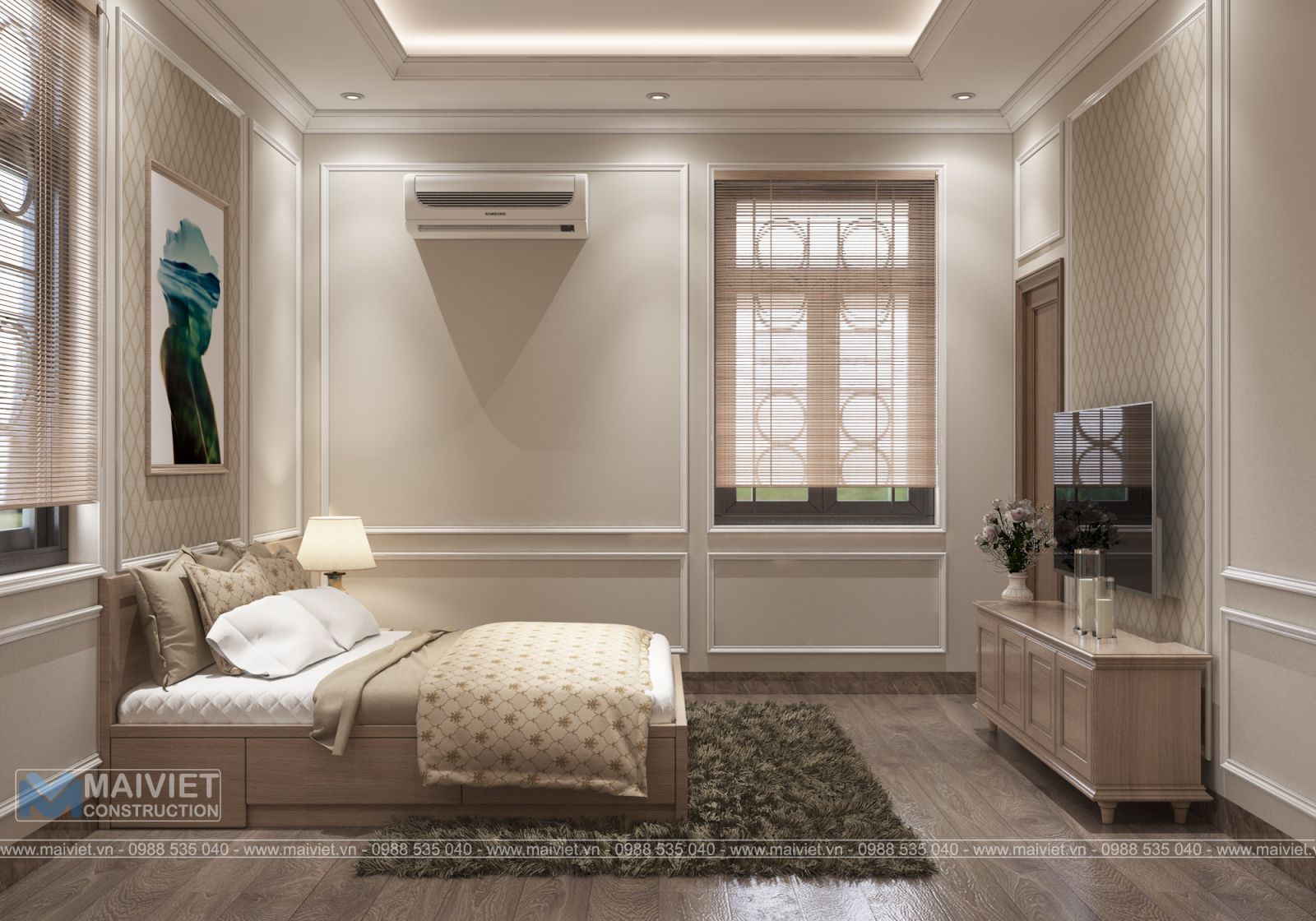 Toàn bộ đồ nội thất được làm bằng gỗ tự nhiên, phong cách nội thất các phòng chức năng cửa tầng 02 được thiết kế theoo phong cách bán cổ điển