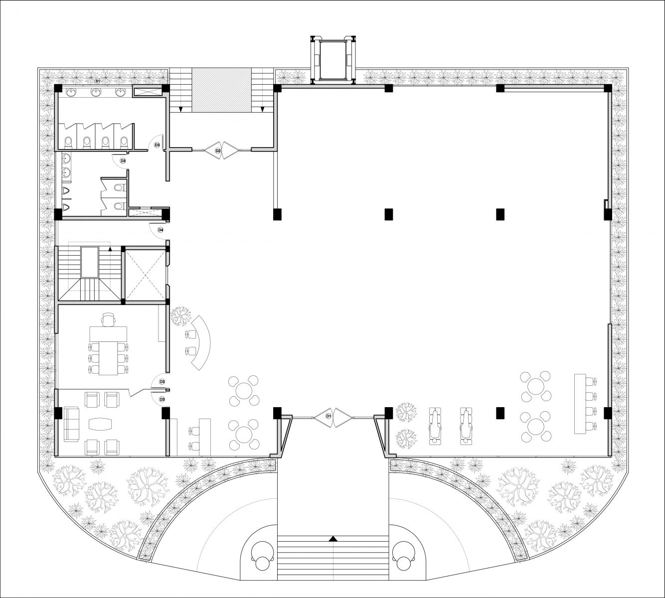Tầng 01, tầng lững và 02,03 là khu vực làm văn phòng và trung bày sản phẩm, tầng 04 là khu vực sinh sống cho gia đình với nhiều tiền ích như hồ bơi và sân vườn trên cao.