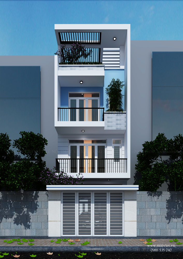 - Mẫu thiết kế nhà phố 5x20m do Kiến trúc Mai Việt thiết kế tại quận 12, thành phố Hồ Chí Minh.