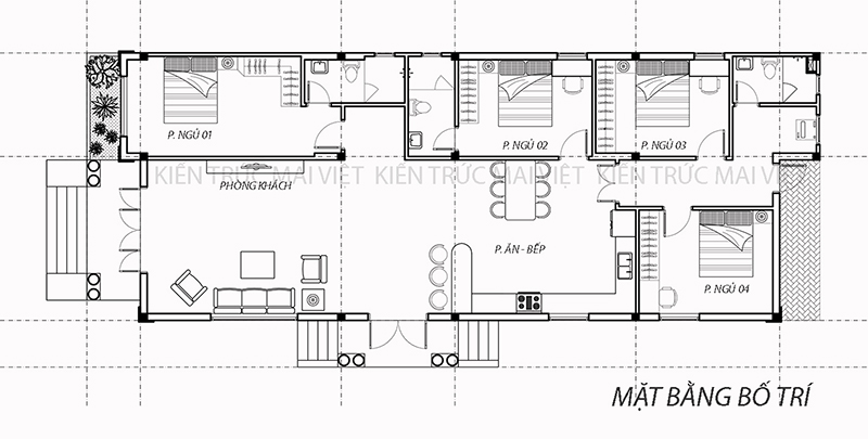 Măt bằng bố trí nhà cấp 4 trong thành phố điển hình